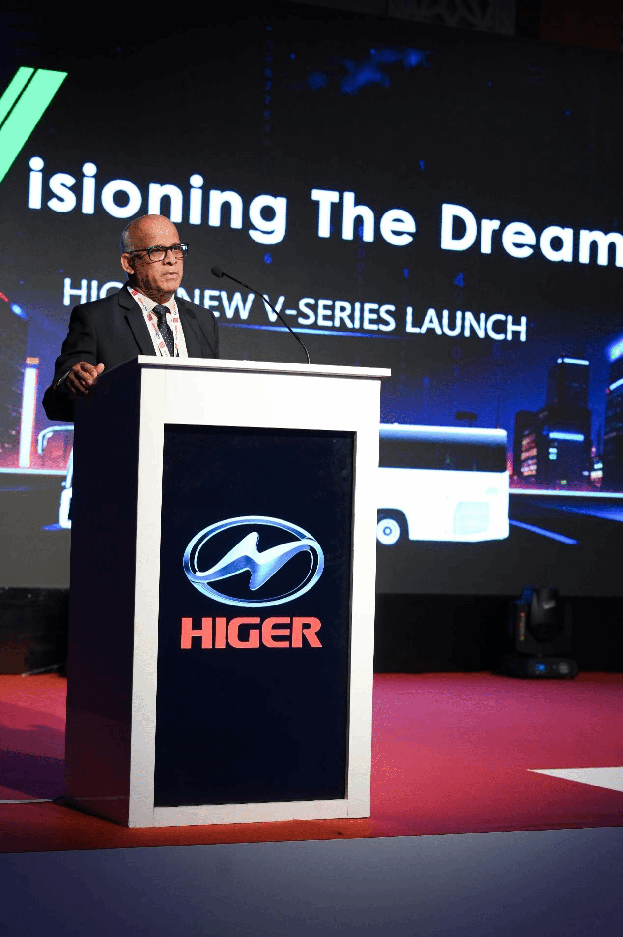活动现场, KHF公司总经理 卡比尔先生 隆重发布了新V系客车。这款历时三年、全员参与、全流程IPD正向研发的全新产品,是海格客车倾力打造的 全新 产品。新V系客车不仅在技术上实现了全面升级,更针对阿联酋的特殊环境和客户需求进行了定制化设计,展现了 苏州 金龙 对阿联酋市场的深刻洞察与专注投入。