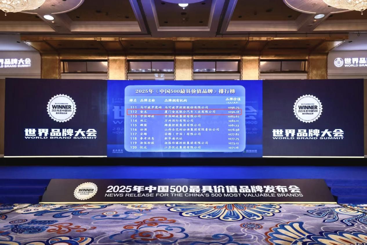 6月18日,在世界品牌实验室主办的第二十二届世界品牌大会上,厦门金龙联合汽车工业有限公司(简称“金龙”)以1096.18亿元品牌价值再度入选“中国500最具价值品牌”,位列第112名。作为中国客车行业首家上市公司、首个实现规模化出海的中国客车品牌,金龙已连续22年蝉联该榜单,以国企担当书写着“品牌强国”的生动实践。
