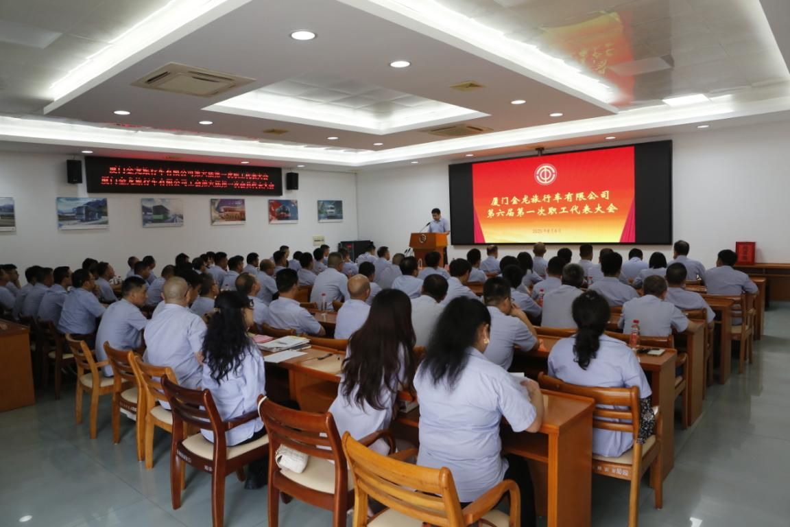 8月6日上午,金旅客车召开第六届第一次职工代表大会与工会第六届第一次会员代表大会。金龙汽车集团党委委员、工会主席左伟,金旅客车党委副书记、总经理赖志艺出席会议,金旅客车工会主席王立志主持会议,共82名“两会”代表参会。