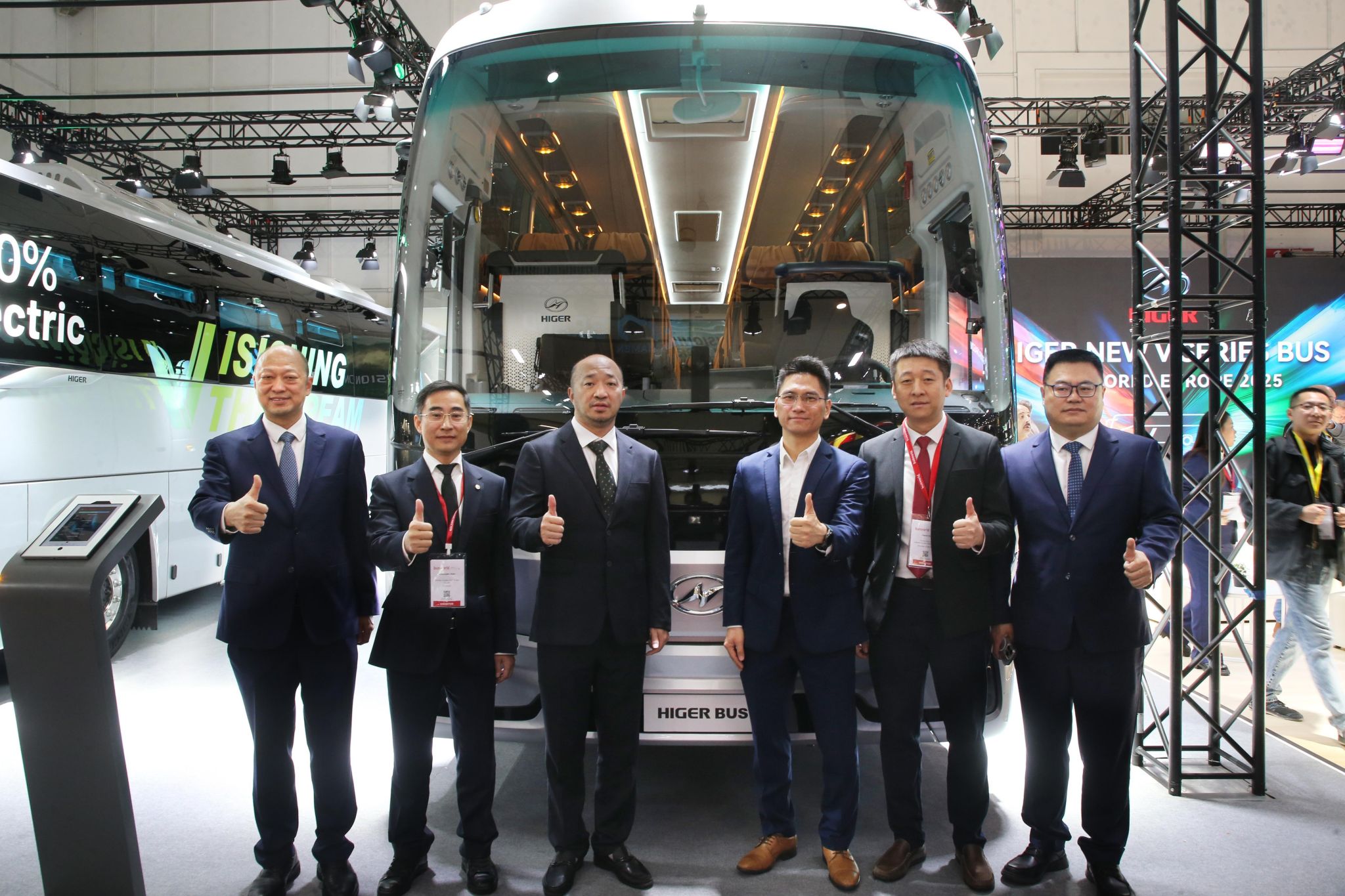 苏州金龙海格客车已连续四届在Busworld国际舞台上为客车全面进入电动化时代发声,从2017年超级电容公交、2019年Azure系列纯电公交、2023年高端子品牌FENCER f1纯电公交,再到2025年发布新V系纯电客车,不仅展示了中国客车一流的研发和制造实力,更标志着中国在新能源客车领域和产品高端化方面的创新引领。