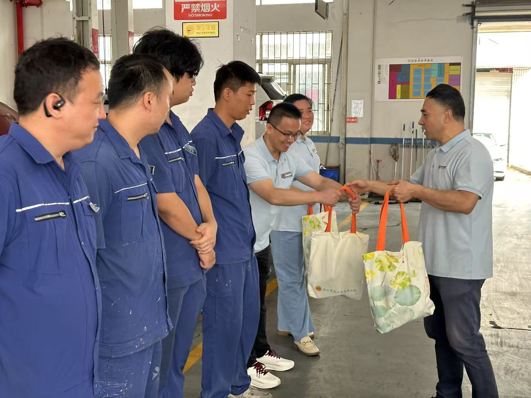 入夏以来,福州持续的高温天气给坚守在一线的职工带来了严峻“烤”验。无论是在维修车间挥汗如雨的维修工,还是奔波在外的外勤人员,他们始终不畏酷暑、坚守岗位,用辛勤付出保障着客户的安全出行。为向这些坚守一线的职工传递关怀,在福州市总工会、集团工会的指导支持下,7月28日,东南汽贸工会开展“你战高温 我送清凉”高温慰问活动。